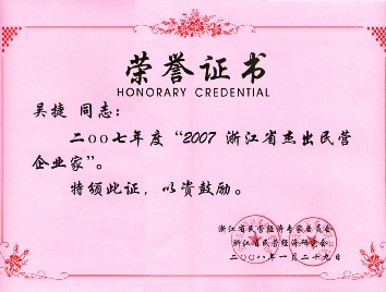 集團總裁吳捷榮獲“2007年度浙江省杰出民營企業(yè)家”稱號
