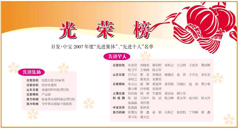 光榮榜——日發中寶2007年度“先進集體”、“先進個人”名單