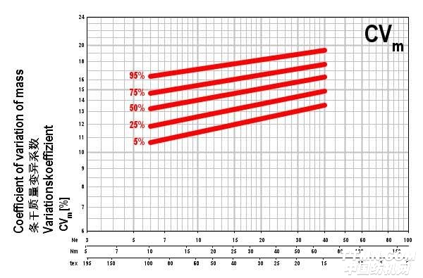 數據量實在太大,直接比較紗線的質量參數就變得非常的困難,但這時也出現了新的契機。烏斯特?公報轉變成為一個標桿基準工具。這個創新也就是,我們不再列出絕對數值,而是將數據成標準類別:5%、25%、50%、75%和95%。這些就成了烏斯特?公報的百分比數值,基于全球紡紗廠生產的每一個紗線品種的質量水平對某一個具體參數進行比較。