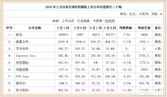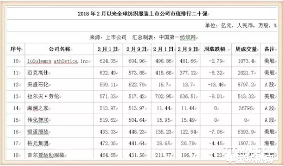 截至2月9日收盤,A股已經(jīng)收報(bào)3129.85點(diǎn),將年初11連陽的漲幅全數(shù)吐出。而受大跌的影響,全球紡織服裝板塊深受其害,311家紡織服裝上市公司的市值由2018年2月1日的34929.2萬億元銳減至2月9日的32885.61萬億元,七個工作日蒸發(fā)掉2043.59億元。