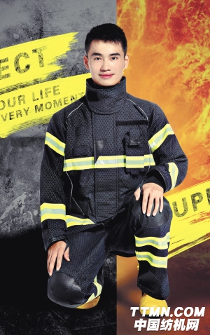 該產品采用最新的阻燃外層、防水透氣層、舒適里層三層結構,外層面料比傳統消防服的阻燃性能提高了1倍,強力提高了1.5倍,防水透氣層增強了空氣隔熱能力,舒適層在手感上更加平滑舒適。產品符合人體工學設計,對腋下、胯襠部分別做了一體化設計,對肘部、膝部做了彎曲設計,滿足救援人員的活動需求。