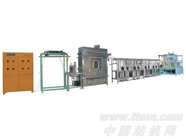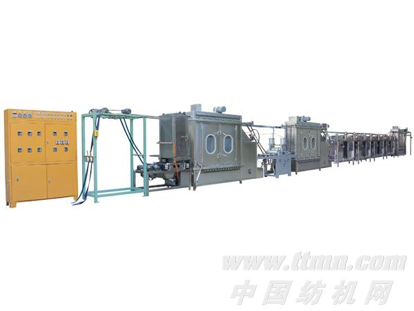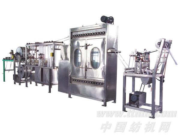 1、本臺機染織帶由1條起至30條不等,可一次性過染色整燙上漿干燙平。組成一條染整流水線生產產品,可染極小寬度織帶,最寬至550mm寬度,薄自網紗帶、厚至安全帶等各種帶類。