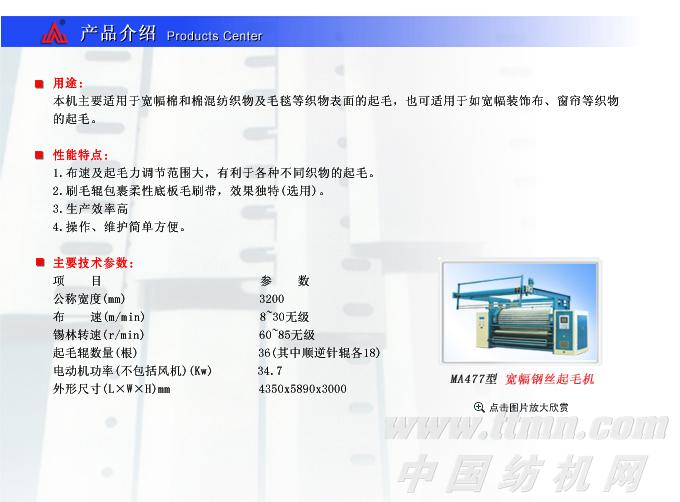 本機(jī)運(yùn)用于法蘭絨、毛毯、呢絨、襯里棉布等織物表面起毛等工作。