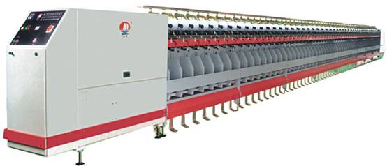 本機是短纖加捻設備,跟傳統的捻線機相比效率成倍地提高,實現一轉兩捻,卷裝容量大,達到萬米