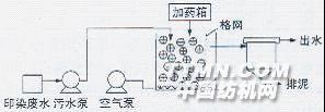 0 前言 印染廢水具有顏色深,COD值高,組成復雜,分布面廣等特點。目前,常用的處理方法有化學沉淀法、生物法和吸附法等。 移動床生物膜反應器(MBBR)是近年來頗受重視的一種新型高效生物膜廢水處理裝置。在反應器中投加比表面積大、密度略小于1的懸浮填料,微生物附著生長在填料表面形成生物膜,曝氣后處于流化狀態,從而實現對污染物的高效去除。另外,聚二甲基二烯丙基氯化銨(PDMDAAC)在水處理方面有絮凝劑用量少、脫色效果顯著等優點,在水處理領域應用廣泛。因此,本試驗嘗試在MBBR中投加一定量的PDMDAAC,以期提高其對印染廢水的吸附性能,取得較好效果。