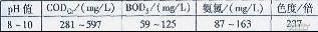 圖1 MBBR試驗裝置1.2填料 填料為空心圓柱體,是MBBR的核心,也是生物膜的支撐和載體。MBBR所用填料為聚丙烯塑料,形似小圓柱體。圓柱體中心有十字支撐,外側沿不同徑向伸展許多尾翅。載體密度略低于水(0.92~0.97 g/cm3),填料比表面積大,大多為200~500 m2/m3。填料表面易于生物膜的附著生長,巧妙的結構設計使其在使用時不結團、不堵塞,始終具有理想的孔隙率,并具有良好的通氣、過水性能。1.3測定項目與方法 測定項目包括pH值、CODcr和氨氮等,均采用國家標準方法3,色度用稀釋倍數法(GB/T 11903—1989)。 試驗廢水取自本地某印染廠,水質情況見表1。 表1 原水水質