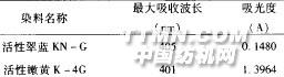 1 實(shí)驗(yàn)部分1.1 藥品與材料混凝劑PAC:工業(yè)產(chǎn)品,其中Al2O3為31% ,堿化度(B)=60% ;脫色劑BT一03:含固量≥50% ,η≥100mpa.s(25攝氏度),p=1.28×10 kg/m ;脫色劑BT—o4:含固量≥45% 。其中BT一03、BT一04脫色劑為山東濱州嘉源環(huán)保有限責(zé)任公司提供。染料:活性翠藍(lán)KN—G、活性嫩黃K一4G。實(shí)際廢水:印染廠未處理廢水,其中染料以K、KN型為主。水樣呈藍(lán)、綠色,經(jīng)測定廢水的最大吸收波長在422nm處,原水在該波長的吸光度為2.3042,溫度為31cc,pH為11,COD為2 560mg/L。實(shí)驗(yàn)儀器:DSHK一4型磁力攪拌器、uV一1600型紫外可見分光光度計(jì)。1.2 實(shí)驗(yàn)方法1.2.1 模擬水樣的配制方法于20L自來水中,加入2g染料,攪拌混合均勻。試驗(yàn)水樣采用濃度為100mg/L的單品種染料液,以排除實(shí)際廢水中其它組分對脫色效果的干擾。實(shí)驗(yàn)選用的染料的名稱、最大吸收波長及模擬水樣的吸光度見表1。表1 染料的名稱、最大吸收波長及模擬水樣的吸光度