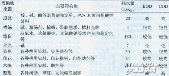 一、引言 天然纖維素纖維如棉麻及其混紡織物的前處理仍然是印染加工過程中水、能消耗和高污染廢水產生量比較大的工序。據有關資料介紹,在整個印染濕加工過程中,漂白和洗滌耗水量占總耗水量的75%,但COD只有5%,污染負荷為8%:退漿和精練耗水量為5%,產生的COD值和污染負荷為75%;染色耗水量為20%,產生的污染負荷為27%。以棉織物的染整加工為例,在退漿過程中要去除經紗上的漿料和織造時上的蠟等潤滑劑,需要使用大量的燒堿和一定數量的表面活性劑,因此廢水的pH值很高。從織物上脫落下來的漿料溶入廢水,大大增加了廢水的BOD和COD值。此外,退漿過程中水的消耗量也比較大。雖然煮練過程的水消耗量比較小,但是由于大量燒堿和表面活性劑的使用,以及棉纖維上的油蠟、果膠質、棉籽殼等雜質從纖維上脫落下來后進入廢水,所以這一工序廢水的堿性強,pH值高,顏色深(呈深褐色),BOD和COD值特別高。漂白過程水的消耗量雖然比較大,但是廢水的BOD和COD值比較低。當使用次氯酸鈉、亞氯酸鈉做為漂白劑時,生產過程的環境污染和勞動保護是非常重要的,同時,含氯漂白劑的使用還會增加目前大家關注的可吸附鹵代有機物(AOX)問題。絲光過程主要使用濃燒堿,并且大部分都回收利用,因此廢水量和BOD、COD值都很低。染色加工過程中,由于染料上染率、助劑等的使用,雖然廢水的BOD值相對較低,但是COD值卻很高,并且水的消耗量比較大。在印花加工過程中,由于使用了糊料等助劑,廢水的BOD和COD值都比較高,廢水量也比較大。水洗過程中水的消耗量僅次于漂白過程,但是BOD和COD值比較低。整理過程的耗水量很低,但是BOD和COD值很高。棉布染整加工所產生的廢水情況見表1。從中可以看出,染整加工中BOD和COD從低到高的順序依次是:煮練、退漿、整理、染色和印花工序,廢水量由大到小的順序依次是:漂白、水洗、染色、印花、退漿工序。減