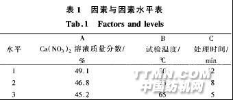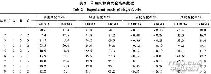 鹽縮工藝是日本桑蠶絲處理的傳統(tǒng)工藝,將桑蠶絲纖維在Ca(NO ) 、CaC1 等中性鹽的熱溶液中進(jìn)行處理,能發(fā)生顯著地收縮、卷曲,前期的研究發(fā)現(xiàn),桑蠶絲纖維這種性能與絲素纖維的溶脹有關(guān),這種溶脹作用主要表現(xiàn)為絲素大分子極性基團(tuán)形成的次價(jià)鍵被破壞而重新配位,使原纖截面橫向膨脹,絲纖維縱向產(chǎn)生收縮,從而使織物外觀皺縮,這就是鹽縮現(xiàn)象⋯。通過鹽縮處理,桑蠶絲織物可獲得皺縮狀的外觀和別致的風(fēng)格,還可增加織物的彈性 ,能滿足不同消費(fèi)者的需要。本文采用Ca(NO ),溶液在不同溫度、試劑濃度和鹽縮時(shí)間下對桑蠶絲織物進(jìn)行處理。根據(jù)基礎(chǔ)配方,采用正交試驗(yàn)設(shè)計(jì)方法,對試樣進(jìn)行鹽縮處理,從而得出較好的鹽縮工藝條件,以期為生產(chǎn)提供參考。1 試驗(yàn)部分1.1 材 料白色單面平針桑蠶絲織物HA1003;醬紫色單面平針桑蠶絲織物HA1004;雙面桑蠶絲織物HA2203A;黑色加捻雙面桑蠶絲織物HA2204A。每種織物在同一試驗(yàn)條件下各取3塊試樣,試樣規(guī)格均為10 cm×10 cm。1.2 試驗(yàn)方法分別選擇Ca(NO,) 試劑的質(zhì)量分?jǐn)?shù)為49.1% 、46.8% 、45.2% ,溫度為80、73、65℃ 和處理時(shí)間為5、8、12 min,采用k(3 )正交法設(shè)計(jì)試驗(yàn)方案。試驗(yàn)因素與水平如表1所示。表1 因素與因素水平表
